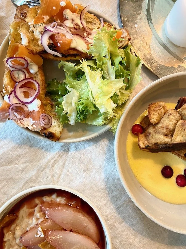Croissant toast - lox with lemon dill yogurt and side salad $18